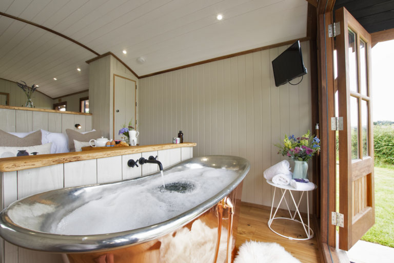 William Holland supplied the  Copper Bateau Bath for use in the bespoke shepherd’s hut accommodation at Black Mountain, the hand made copper bath sits perfectly with the rustic charm of the hut.